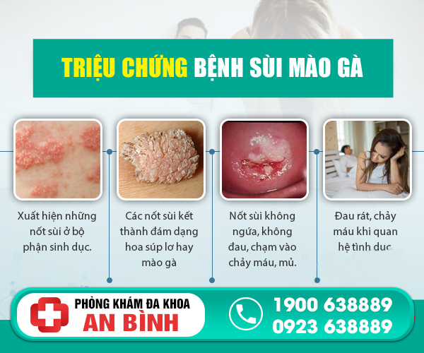 Sùi mào gà (hay mụn cóc sinh dục) là những nốt sùi mềm xuất hiện trên bộ phận sinh dục, có thể mọc đơn lẻ hoặc mọc dày đặc lên thành hình dạng giống như súp lơ hoặc mào gà, gây đau, khó chịu, ngứa...