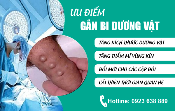 Gắn bi vào dương vật là một thủ thuật phẫu thuật trong y học. Nó cho phép đưa bi vào trong dương vật, giúp anh em tăng kích thước cậu nhỏ. Những viên bi hoạt động như ròng rọc. Khi nam giới nhận được kích thích tình dục và dương vật bắt đầu cương lên, những viên bi sẽ chuyển động để làm tăng kích thước dương vật lên nhiều lần.