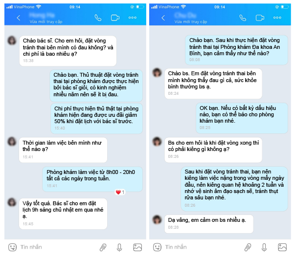 Phòng khám đa khoa An Bình đã tiếp nhận và đặt vòng tránh thai thành công cho nhiều trường hợp. Nhận được phản hồi tích cực từ phía chị em: