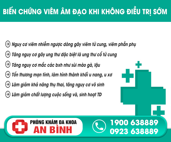 -Tăng nguy cơ mắc các bệnh viêm nhiễm khác: Viêm âm đạo để lâu các tác nhân gây bệnh ngược dòng xâm nhập vào các bộ phận khác gây viêm nhiễm như viêm cổ tử cung, viêm phần phụ, viêm vùng chậu,…Những căn bệnh này ảnh hưởng đến sức khỏe, cuộc sống.