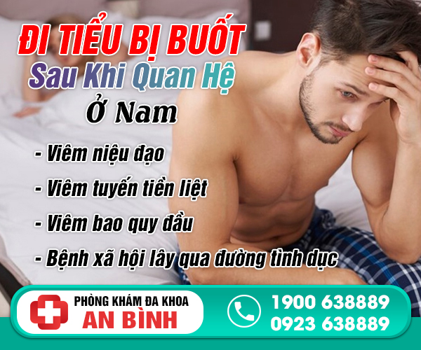 Trên đây là những chia sẻ giúp bạn đọc nắm được tình trạng đi tiểu bị buốt sau khi quan hệ ở nam? Nếu còn bất cứ băn khoăn gì hãy vui lòng liên hệ với phòng khám thông qua hotline 1900 638889/ 0923.638.889 sẽ được tư vấn miễn phí 24/7. Hoặc trực tiếp đến phòng khám đa Khoa An Bình để thăm khám và chữa trị bằng phương pháp tân tiến.