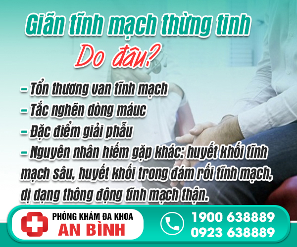 Trên đây là những chia sẻ giúp bạn đọc hiểu hơn về Giãn tĩnh mạch thừng tinh do đâu? . Nếu còn bất cứ băn khoăn gì hãy vui lòng liên hệ với phòng khám thông qua hotline 1900 638889/ 0923.638.889 sẽ được tư vấn miễn phí 24/7. Hoặc trực tiếp đến phòng khám đa khoa An Bình để thăm khám và chữa trị bằng phương pháp tân tiến.