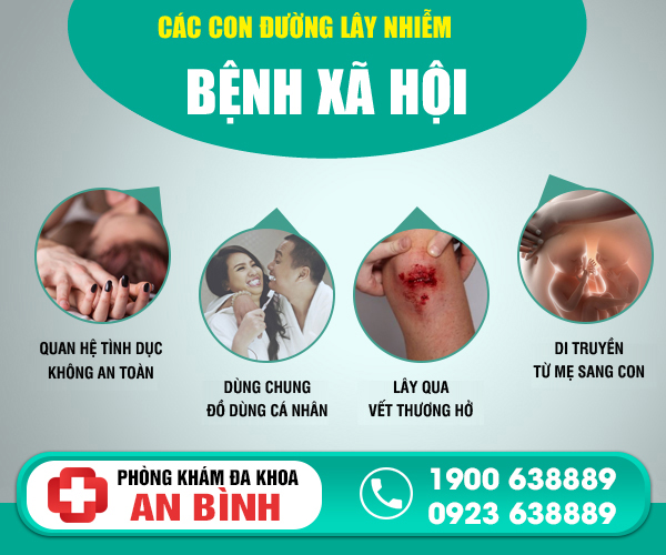 Phòng khám đa Khoa An Bình là một trong những cơ sở y tế uy tín được đông đảo bệnh nhân lựa chọn để khám chữa bệnh lây qua đường tình dục (bệnh xã hội). Đến với đa Khoa An Bình người bệnh sẽ được thăm khám, xét nghiệm chuẩn đoán bệnh xã hội. Sau đó áp dụng những phương pháp chữa bệnh tiên tiến.