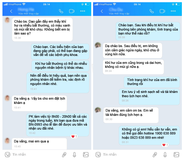 Bài viết trên đây đã chia sẻ thông tin về Khí hư màu trắng là bị bệnh gì?. Nếu còn bất kỳ thắc mắc nào cần được tư vấn hay muốn liên hệ với các bác sĩ chuyên khoa để đặt lịch xin liên hệ Hotline: 1900 638889 / 0923638889 để được bác sĩ tư vấn cụ thể và miễn phí.