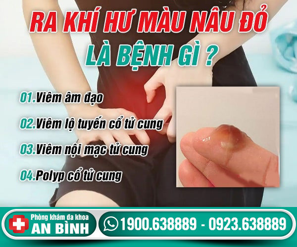 Khí hư màu nâu đỏ có thể sẽ đậm hoặc nhạt hơn tùy vào mức độ của bệnh. Thường là do một cơ quan nào đó trong bộ phận sinh dục bị tổn thương và xuất huyết. Khiến cho máu lẫn với khí hư và làm cho khí hư tiết ra có màu khác thường.