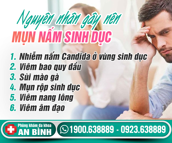 Mụn nấm sinh dục, dù là vấn đề tế nhị nhưng lại không hiếm gặp và ảnh hưởng trực tiếp đến sức khỏe sinh sản. Nếu không được điều trị kịp thời, bệnh có thể gây ra những biến chứng nguy hiểm. Nhưng đừng lo lắng! Tại phòng khám đa khoa An Bình, bạn sẽ được điều trị mụn nấm sinh dục một cách hiệu quả, mau chóng và đặc biệt là tiết kiệm chi phí mà vẫn đảm bảo chất lượng.