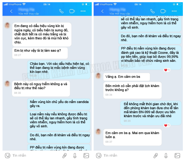 Phòng khám đa khoa An Bình đã tiếp nhận và điều trị thành công cho nhiều trường hợp bị mắc bệnh nấm phụ khoa tái phát nhiều lần. Nhận được phản hồi tích cực từ phía bệnh nhân: