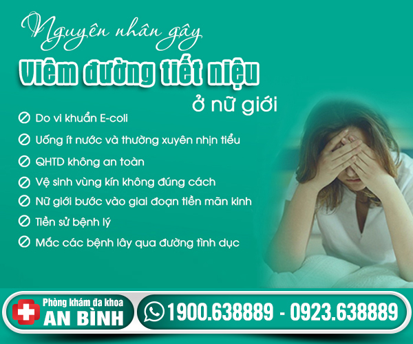 Trên đây là những chia sẻ giúp bạn đọc biết nguyên nhân bị viêm đường tiết niệu thường gặp. Nếu còn bất cứ băn khoăn gì hãy vui lòng liên hệ với phòng khám thông qua hotline 1900 638889/ 0923.638.889 sẽ được tư vấn miễn phí 24/7. Hoặc trực tiếp đến phòng khám đa Khoa An Bình để thăm khám và chữa trị bằng phương pháp tân tiến.
