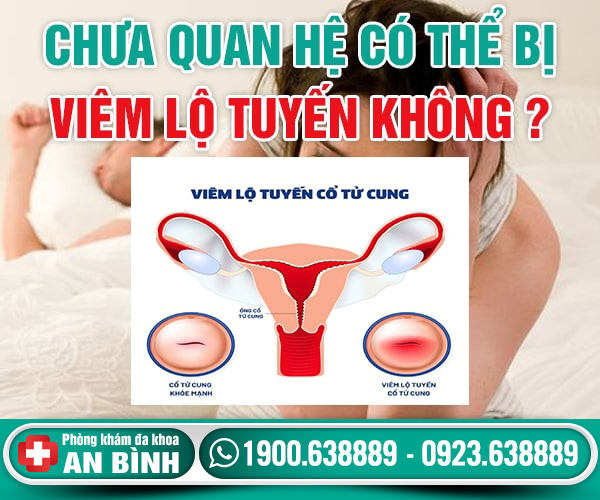 Chưa quan hệ có thể bị viêm lộ tuyến không? là băn khoăn của nhiều chị em. Bởi, thực tế có không ít người lầm tưởng mắc bệnh phụ khoa viêm lộ tuyến chỉ xảy ra ở những người đã lập gia đình hay có đời sống tình dục phóng khoáng. Thông qua sự tham vấn của bác sĩ phòng khám đa khoa An Bình.