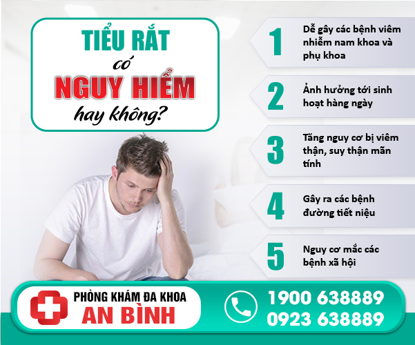 Tiểu rắt có thể là dấu hiệu cảnh báo nhiều bệnh lý nguy hiểm. Nếu muốn điều trị bệnh hiệu quả, hạn chế tái phát bạn hãy đến cơ sở y tế chuyên khoa chất lượng như Phòng khám đa Khoa An Bình.