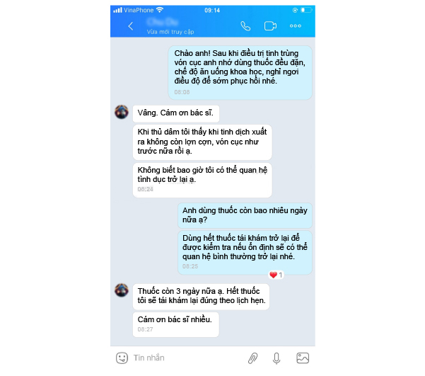 Phản hồi tích cực của bệnh nhân sau khi chữa tinh trùng vón cục