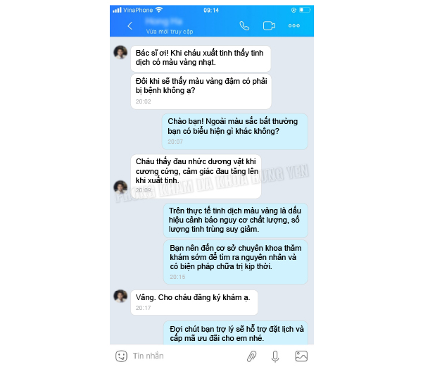 Nhận tư vấn cách chữa tinh trùng vàng với bác sĩ