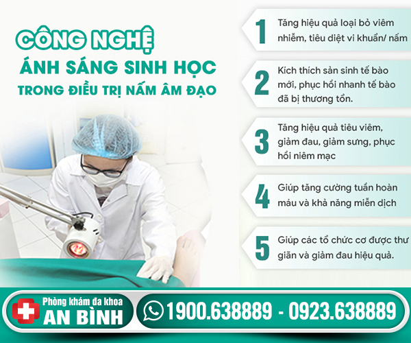 Đây là phương pháp tiên tiến đang được các cơ sở y tế sử dụng bởi sử dụng ánh sáng sinh học có khả năng diệt vi khuẩn cực tốt, đến thẳng ổ bệnh tiêu diệt sạch vi khuẩn có hại. Cùng với đó làm ổn định và cân bằng độ PH ở âm đạo, không gây ảnh hại tới việc sinh nở của chị em.