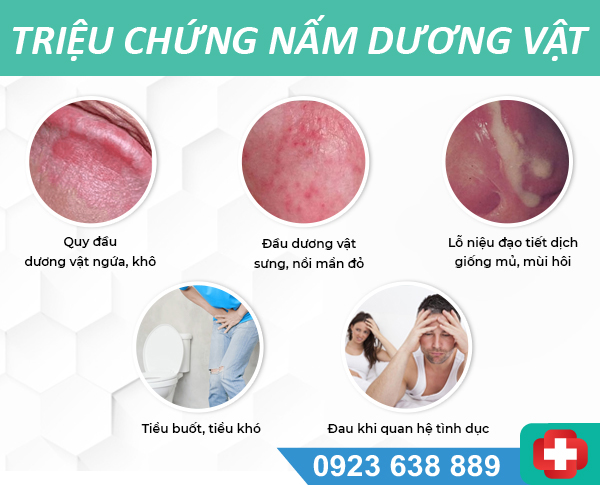 Nam giới bị bệnh nấm ở dương vật có thể nhận biết ra bệnh thông qua những triệu chứng sau: